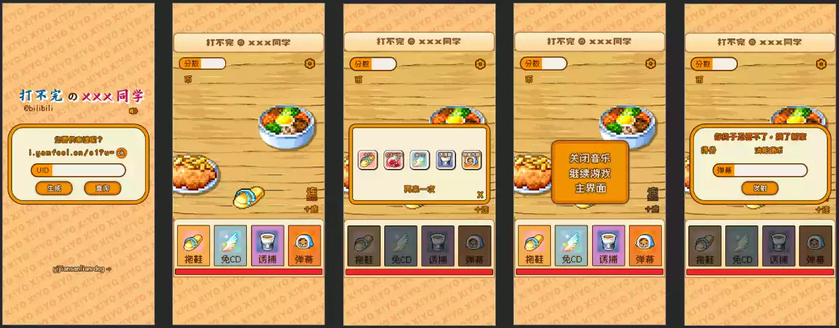 游戏玩法 - 射击类,抛鞋板打击怪物,互动弹幕技能,B站UID头像生成,打分榜